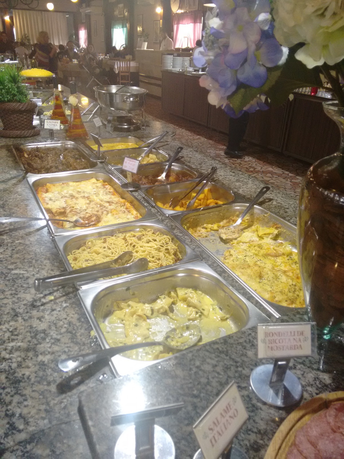 O Restaurante Cantina Italiana é um espaço tipicamente italiano, com um buffet variadíssimo. Prepare-se para provar a fortaia, uma espécie de omelete cremosa com muito queijo, a polenta cortada a fio, que dá vontade de comer o tacho todo, além de massas e saladas!! Para a entrada aquela sopa de capeletti que a gente respeita!