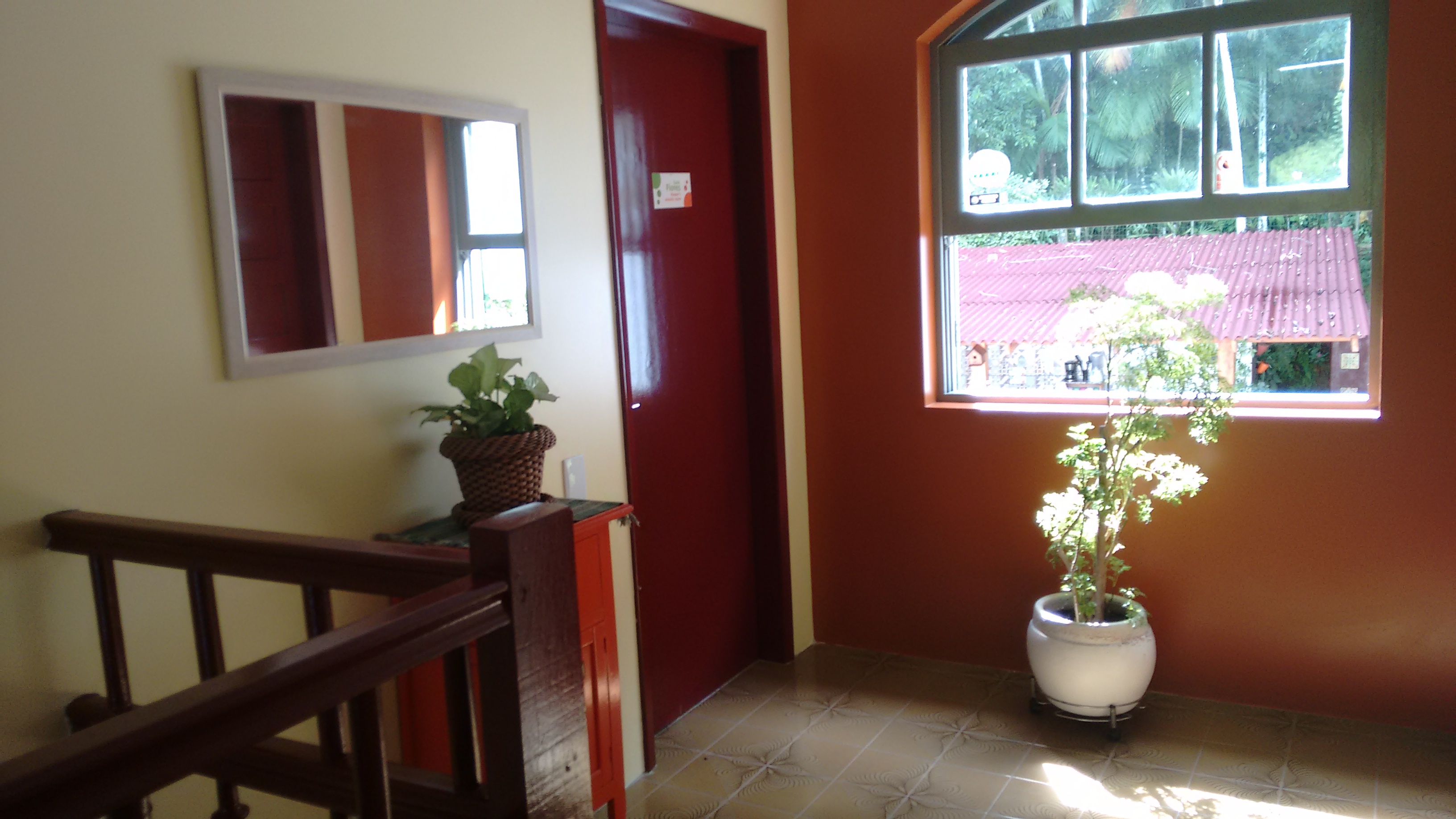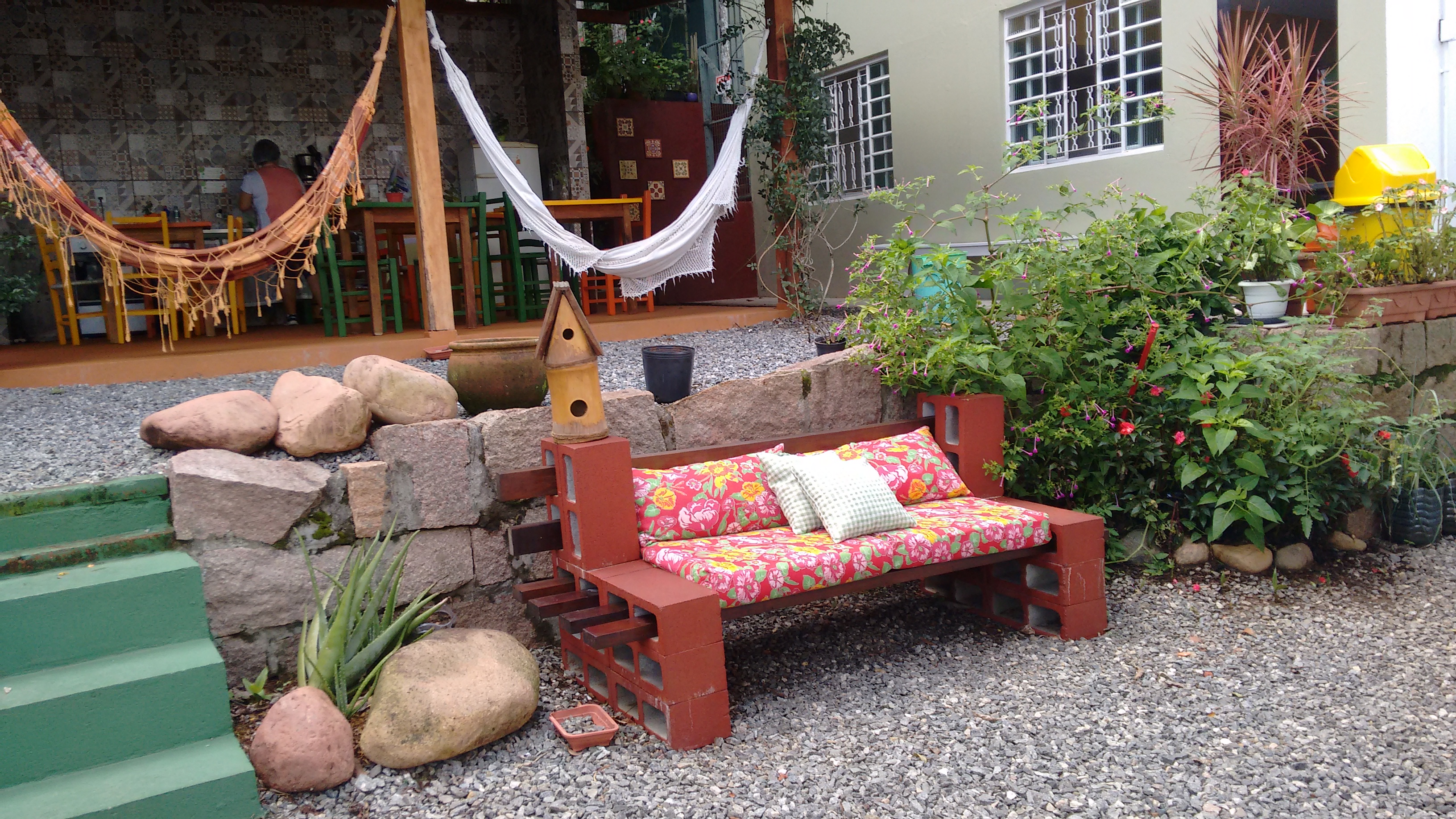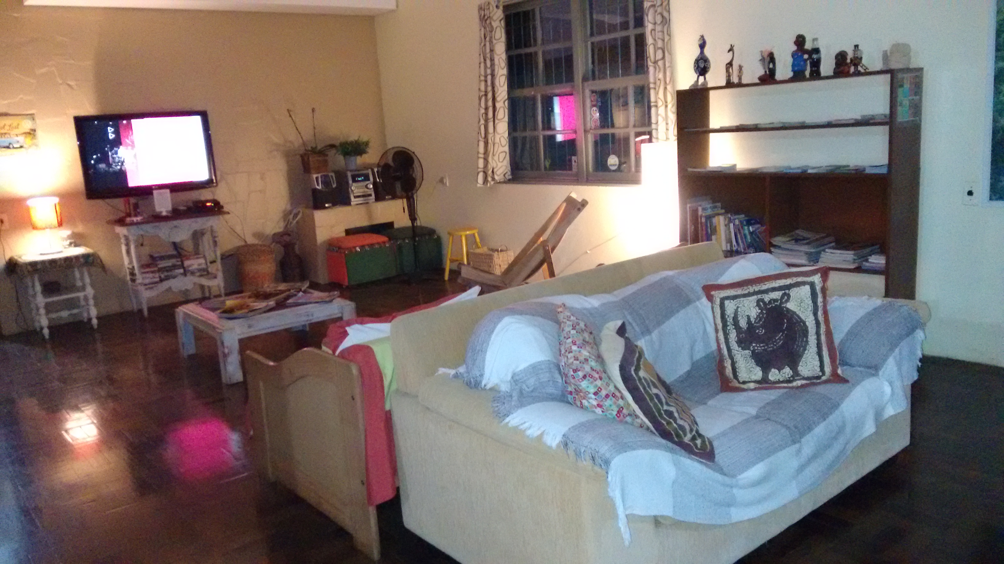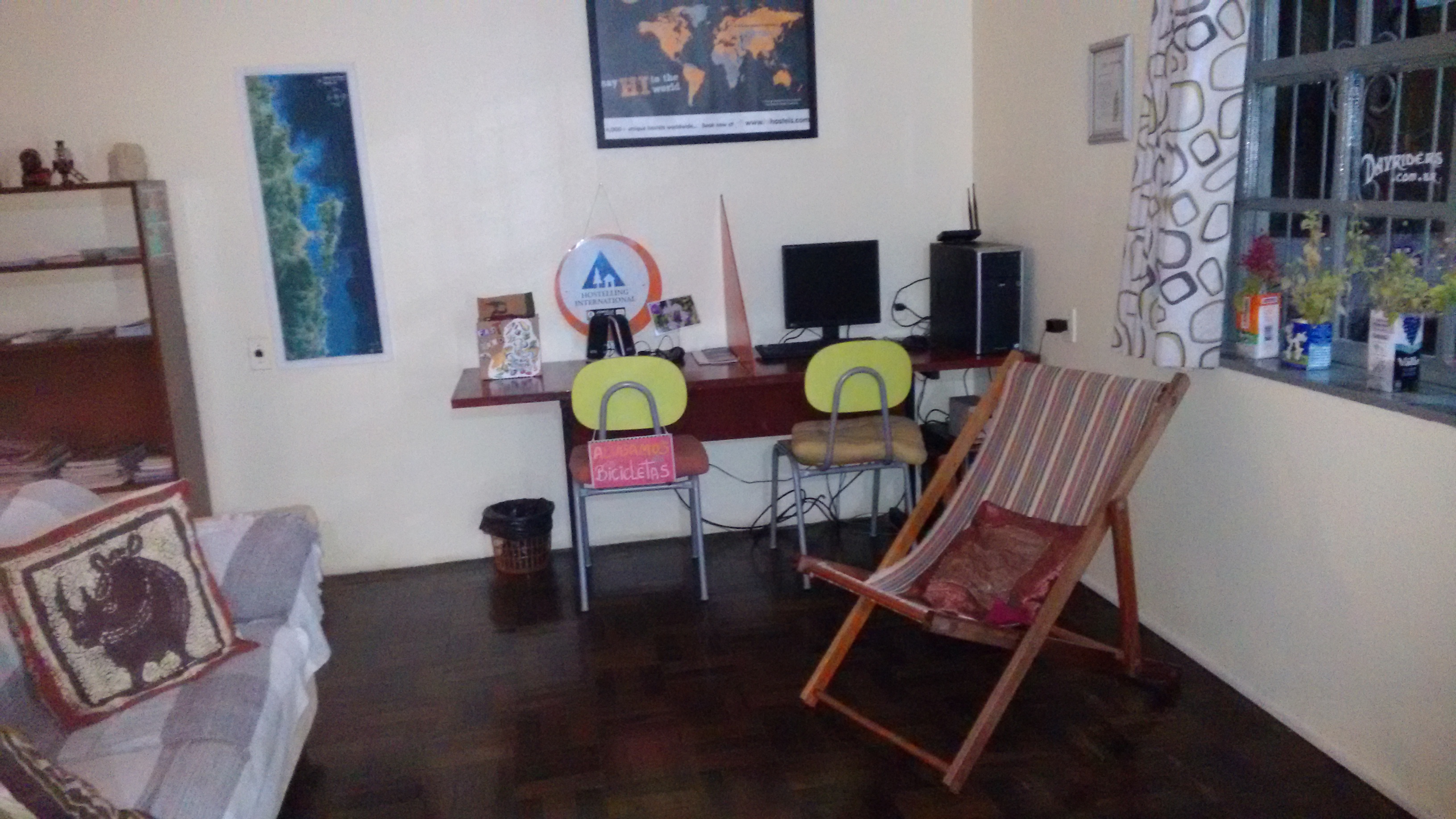 O Hostel fica em um casarão de dois pisos e é muito bem distribuído em termos de espaço. É possível guardar o carro, mas não é coberto. O que para nós não teve problema. No andar térreo ficam a recepção e a sala de convivência, com sofás, TV e um computador com acesso a Internet. Um dos quartos também fica no térreo.