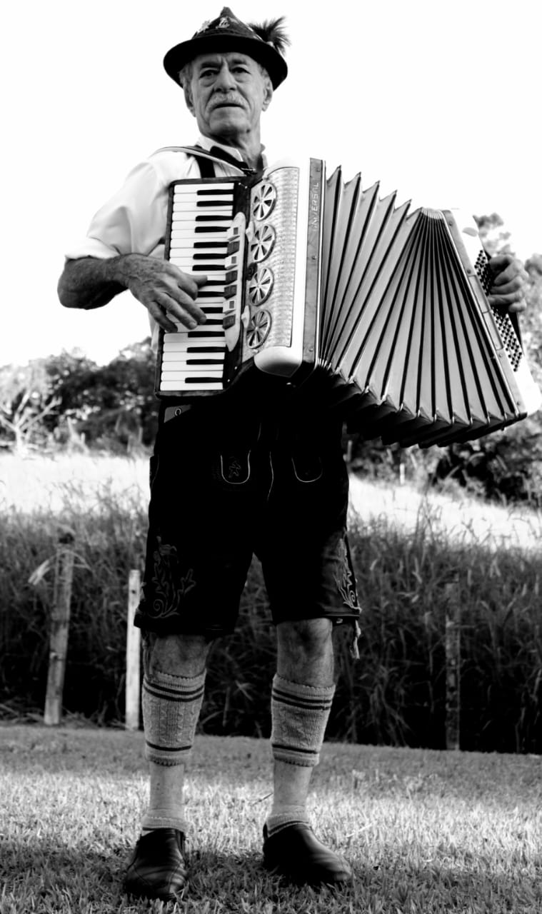 Quando chegamos à casinha típica, erguida nos anos 1940 pela família Manske e até hoje utilizada por eles, somos recebidos por um som harmonioso de acordeão, que vai das tradicionais músicas alemãs até algumas mais atuais!
