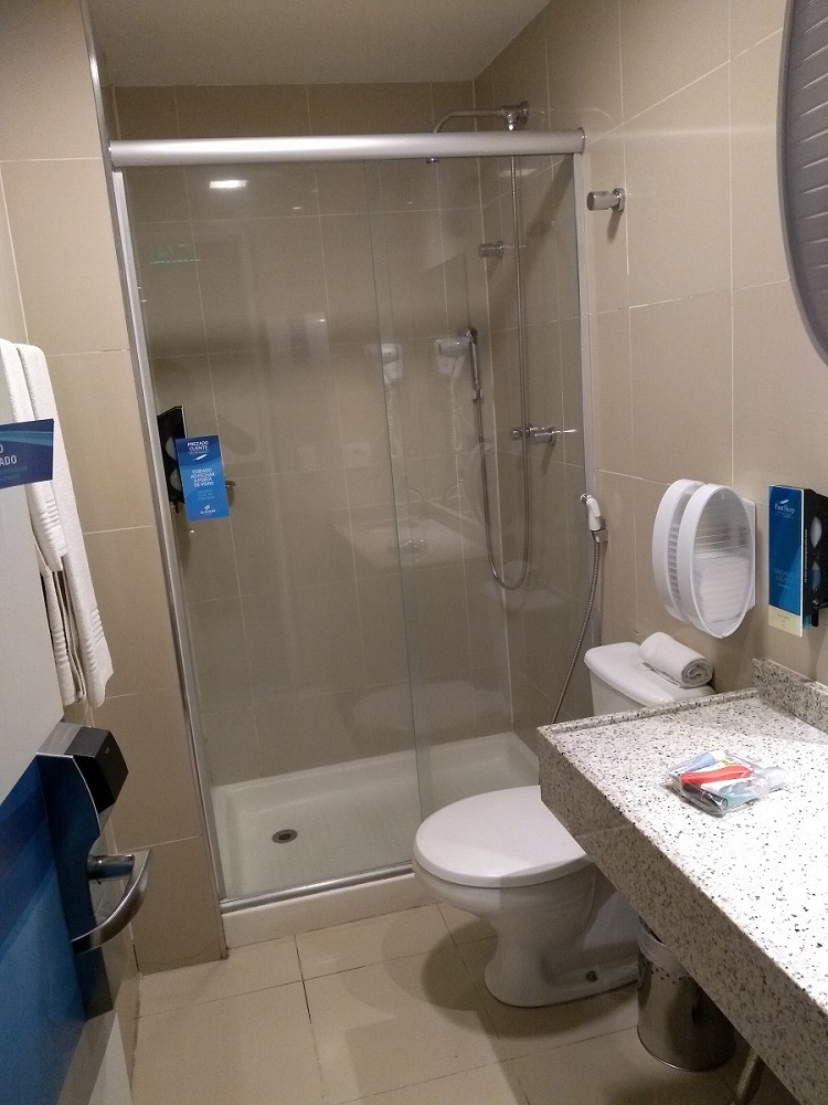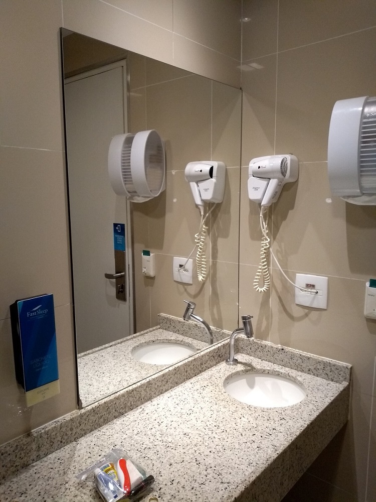 Com eu estava com sono e tinha que acordar cedo, para tomar banho e seguir viagem, logo peguei no sono! Mas… lá pelas tantas acordei com barulho no corredor, de malas passando e as pessoas conversando. Sim, a acústica do hotel é um ponto negativo. Poderia ser melhor, para que os hóspedes conseguissem descansar mais. Bom, acabei dormindo de novo e acordei só com meu celular despertando.